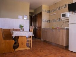 Dispone de una cocina totalmente equipada (nevera, vitrocerámica, microondas, menaje y televisión— además de un práctico sofá cama para mayor capacidad.